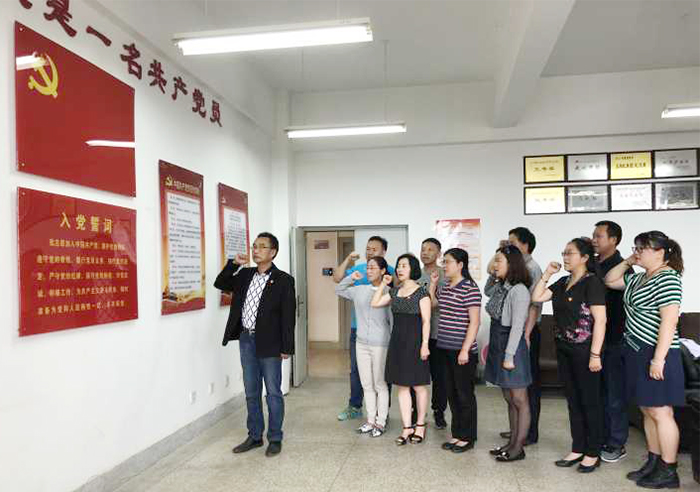 6月23日,医学院党总支根据学校党发〔2018〕31 号文件要求,在1417党员活动室开展了“党员政治生日”主题党日活动。党总支为6月入党的14名党员同志送上了热情洋溢的生日祝福,并制作了“政治生日贺卡”。各支部书记、支部委员分别与14党员开展了谈心谈话,要求大家增强党员意识,激励党员不忘初心、牢记使命、奋发有为,切实增强荣誉感、责任感、使命感,争做“四讲四有”党员,充分发挥先锋模范作用,增强基层党组织的创造力、凝聚力、战斗力。王建华书记带领14名过政治生日的党员同志们,面对鲜红的党旗,举起了右手,重温入党誓词。