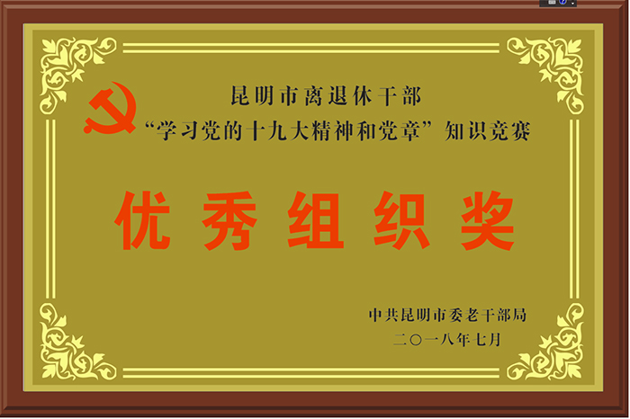 学校荣获市委老干部局“不忘初心、牢记使命——学习党的十九大精神和新党章”知识竞赛优秀组织奖